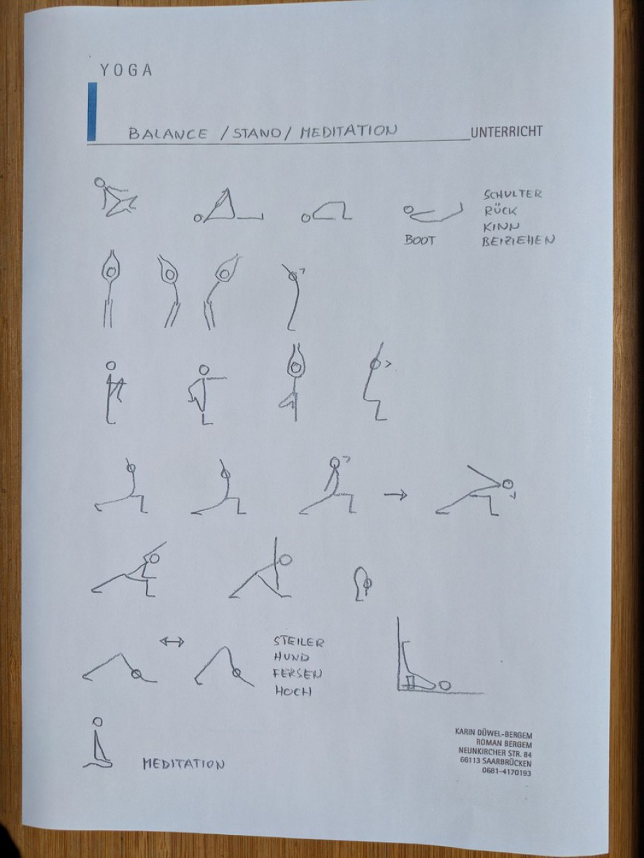 Jede Woche findest du an dieser Stelle ein Übungsprogramm für dich zu Hause. Egal ob Anfänger/in oder Fortgeschrittene/r, ob Frau oder Mann, jung oder alt - probier es einfach aus. Und wenn du Fragen zu unseren Yoga Kursen hast oder Interesse an einer kostenlosen Probestunde hast, schreib uns eine E-Mail an karin.duew.bergem@web.de oder ruf uns einfach an unter der +49 681 4170193. Wir freuen uns auf dich!