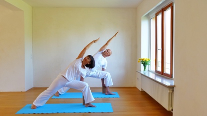 So sorgt der Einsatz des wasserdampfdurchlässigen Kalk-Glätteputzes das ganze Jahr über für ein angenehmes Raumklima und die optimale Umgebung für unsere Yoga Kurse. Durch seine desinfizierende Wirkung und seine enorme Wasserdampfaufnahmefähigkeit bleibt die Atemluft stets frisch und angenehm. Der Bambusparkett-Holzboden in unserem Yogastudio in Saarbrücken ist weich auf Holzwolleplatten gelagert, sodass sich bei Belastung während unserer Yoga Kurse ein natürliches, leichtes Federn einstellt, was besonders bei den Übungen am Boden positiv auffällt und zu einer tollen Atmosphäre im Raum beiträgt.